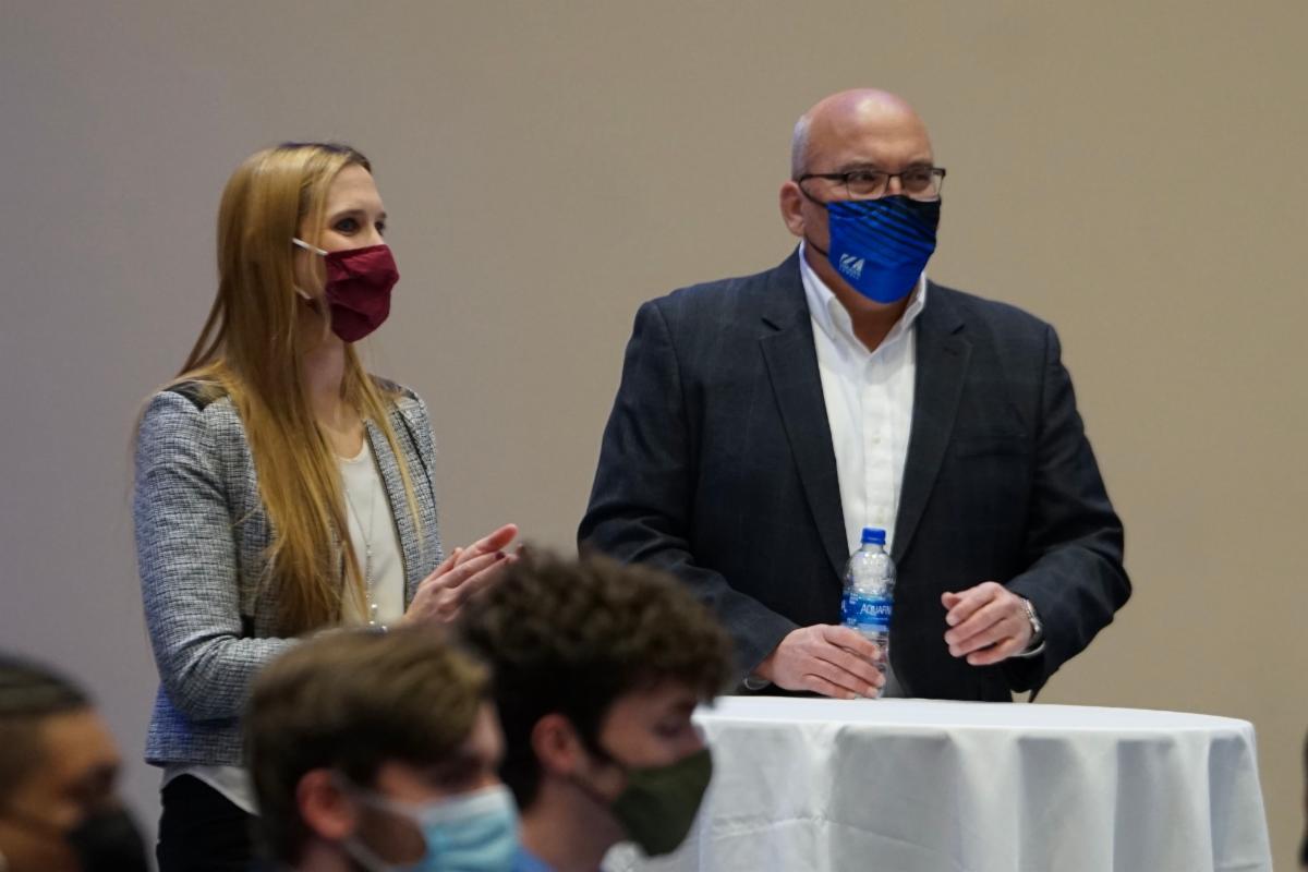 DifferenceMaker Director Holly Lalos '11, '12 (left) with DCU President and CEO Jim Regan '88.