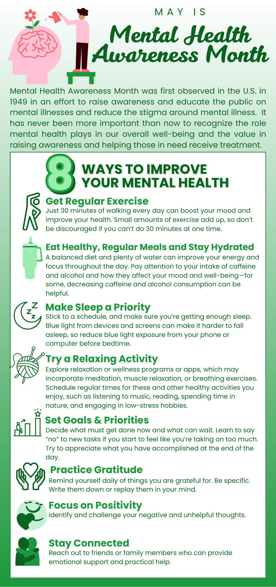 As many of you know, May is Mental Health Awareness Month, a time to acknowledge the importance of our mental health and well-being, and to reflect on how we can support one another in our community. Your mental health is as important as your physical health, and it's essential that we foster an environment where everyone feels supported and heard. We all have a role to play in creating a workplace that is open, compassionate, and respectful of our colleagues' needs. In this edition of Limelight, we will share some tips on how to make your mental health a priority in the workplace.