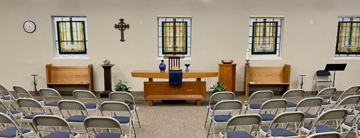 So, as you can see in the opening photograph, we have set up our worship space in the Fellowship Hall for the foreseeable future.