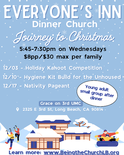 EVERYONE IS WELCOME to California Heights United Methodist Church (3759 Orange Avenue, Long Beach, CA) on Sunday, December 7th at 10:00 AM for our worship service.