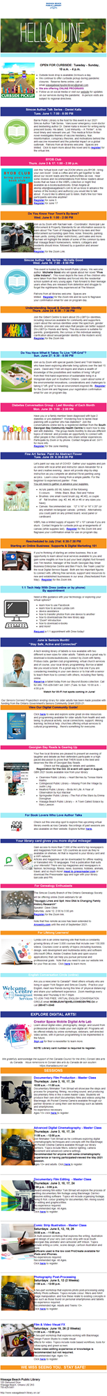 - June library program calendar;