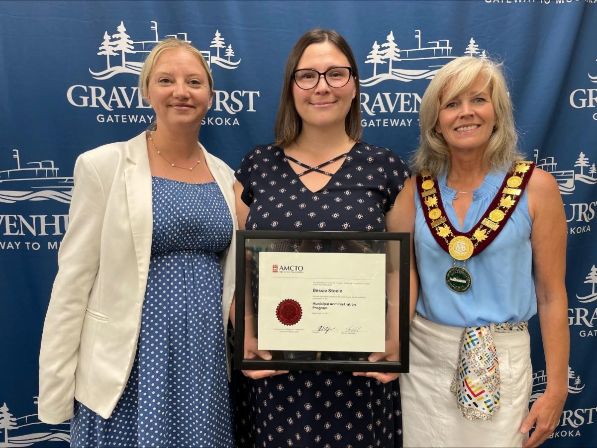 | On Aug. 12, council acknowledged Finn MacDonald as the 2025 Gravenhurst High School Bursary recipient. On behalf of council, Mayor Heidi Lorenz congratulated MacDonald on receiving the $2,000 bursary. The town provides the bursary each year to a GHS graduate to help them further their education at the post-second level. The town accepts bursary applications every spring. MacDonald is attending the University of Ottawa this fall, where he will study political science and philosophy. | Educational achievement for town staffer | Congratulations to Bessie Steele, an administrative clerk 2 in the Town of Gravenhurst's Legislative Services Department, on completing the Municipal Administration Program (MAP). MAP is a certificate program through the Association of Municipal Managers, Clerks and Treasurers of Ontario. Each unit in the program has assignments that involve reading, research, writing, and application, providing individuals with a comprehensive understanding of the municipal sector. On Aug. 12, Mayor Heidi Lorenz and Kayla Thibeault, director of legislative services for the town, presented Steele with her MAP certificate. | Mark your calendar for Coffee with Council | |
