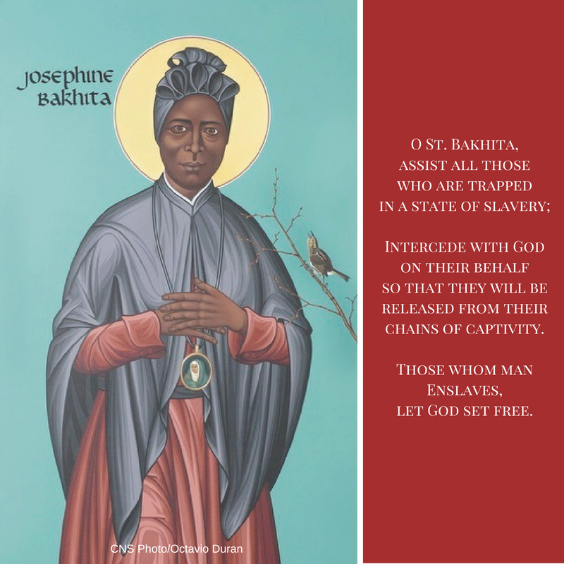 On Feb. 8, the Church honors St. Josephine Bakhita, a religious sister who, as a young girl, was kidnapped from Sudan and enslaved. After gaining her freedom, she spent more than 50 years in humble service to her sisters and the local community until her death in 1947. She is now the patron saint of those impacted by human trafficking, and her feast day coincides with the Church’s International Day of Prayer and Awareness Against Human Trafficking.