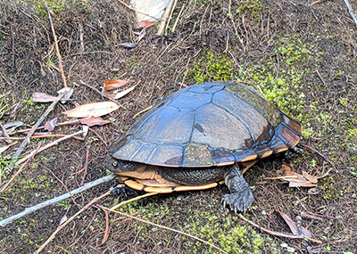 healthy turtle recently at the base of the leaky weir at Peter's Pond on the Home Farm, giving a good indication of the creek's health despite the current drought-like conditions.