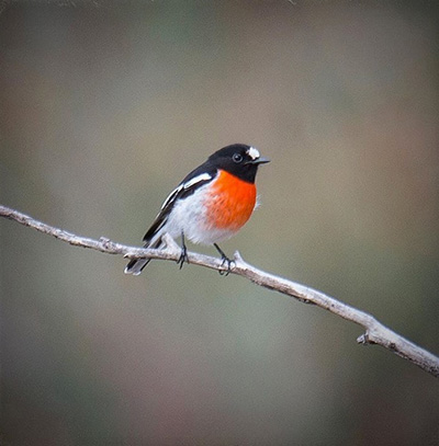 Green and Gold Bell Frog, Scarlet Robin, Diamond Firetail, and Dusky Wood Swallow.
