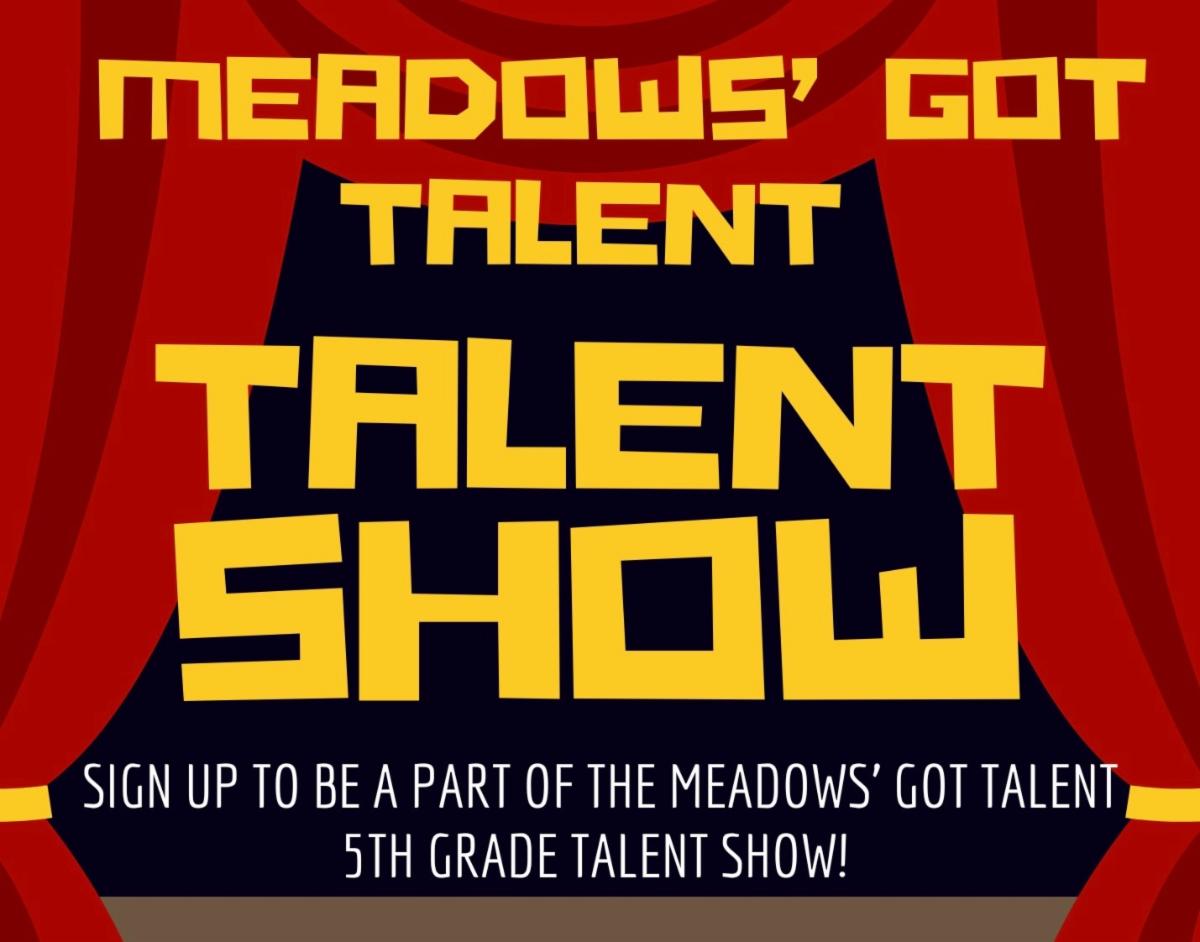 Sign up to be part of the Meadows' Got Talent 5th Grade Talent Show! *Do an act by yourself or with friends! *Be a part of the stage crew and help with lights, microphones, curtains and more! *Be an "MC" (AKA Master of Ceremonies) and help introduce the acts as they come on stage!