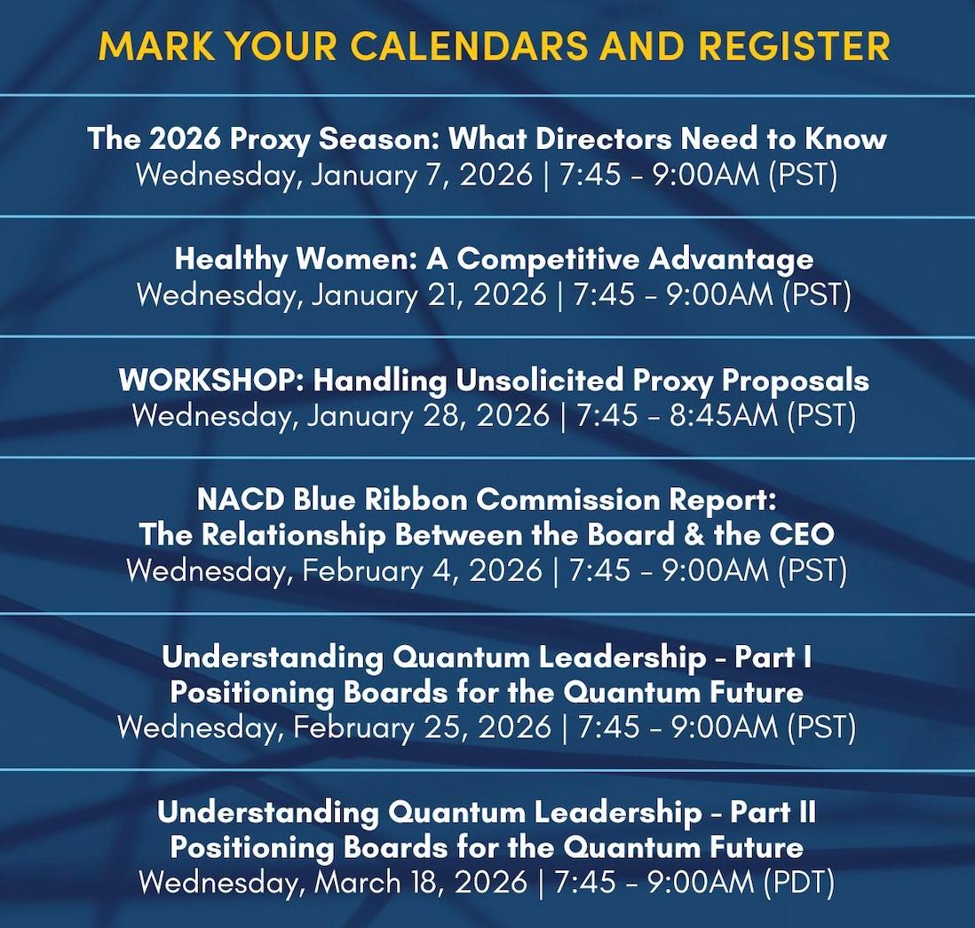 Join Us In The New Year At Upcoming NACD PSW Chapter Programs