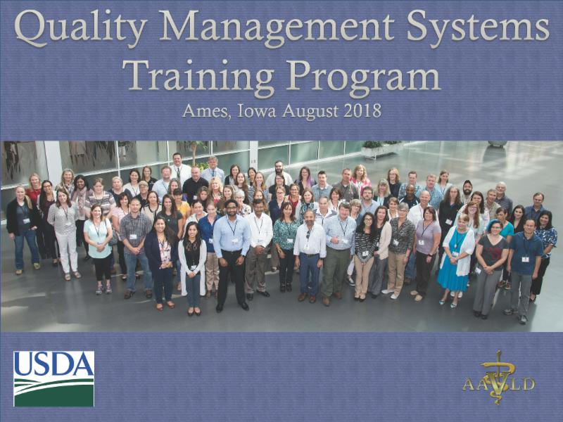 The 2018 QMS course was reviewed and modified through a collaboration between members of the AAVLD AC and NVSL personnel. The course was provided in August to 76 participants: