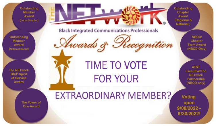 You nominated some very Extraordinary NETwork Members! Now it is time to cast your vote from The NETwork members/chapters that were nominated for our annual Awards and Recognitions. Winners will be announced at The NETwork National Townhall on Thursday, October 27, 2022 and in the November National newsletter.