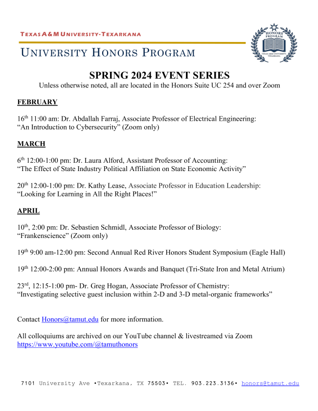 There are no home athletic events scheduled for the next several days. The next home games will be Softball and Tennis scheduled for February 17th. Visit www.tamuteagles.com for game schedules and streaming links.