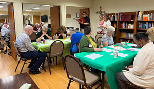 The Becoming Beloved Community Ministry at St. Barnabas' recently hosted a movie discussion. Co-Chairs Carter Bowersox and Cindy Richards report: The documentary Who We Are : A Chronicle of Racism in America was viewed at home in advance, and the group gathered for soup, fellowship, and guided discussions in breakout groups. 34 participants included guests from Sts. Andrew & Matthew, Wilmington, and members of the Social Justice Committee of Temple Beth El, Newark. The movie interweaves lecture, personal anecdotes, interviews , and historic revelations from civil rights attorney Jeffery Robinson, who draws a stark timeline of anti-Black racism in the US, from slavery to 20th Century legislation and the modern myth of a post-racial America. Discussion questions focused on previously unknown history, things that surprised us, Jeffery’s framework around unconscious bias and white privilege, and shared experiences of people of color. The group left with a take-home reflection and challenge to identify things we can do within our sphere of influence to make a difference. Photo credit St. Barnabas' Church