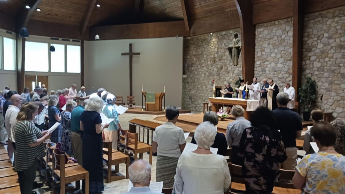 On June 11, some 150 people took part in the service when clergy and members of the Sts. Peter and Paul Ukrainian Orthodox Church were welcomed to St. David's as a follow-up to a program held this past winter. The Rev. Brad Hinton, rector of St. David's, and the Rev. Stephen Hutnick, the priest of Sts. Peter and Paul, were joined by area clergy including Rabbi Michael Beals of Beth Shalom and Pastor Kathy Lerien of the Good Shepard Lutheran Church. While donations to this humanitarian cause have been forthcoming, prayer offerings were also needed. Ending the war and the killing of innocent people cannot come fast enough. One attendee said she hopes the next time we get together it will be to celebrate the war’s end. Following the service members of the St. David's outreach committee offered hospitality to all attendees in the Memorial Room, where the Ukrainian colors of blue and yellow provided the backdrop for good food and fellowship. St. David's has forged a new and growing relationship with our close neighbors in the Ukrainian Church. Our hope and prayer is that the suffering ends soon.