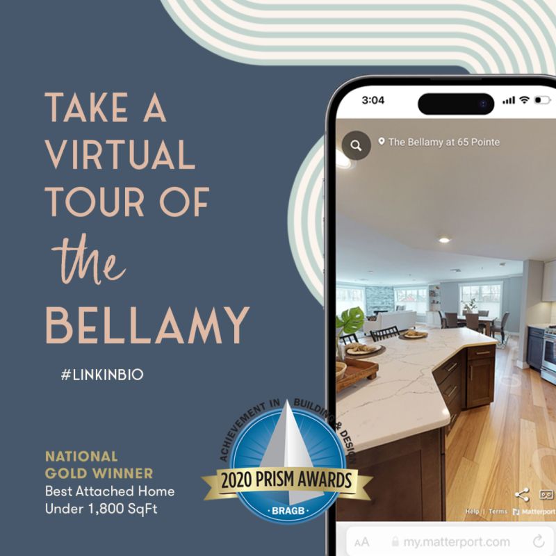 Now that you know our onsite Sales Center is open, we're excited to share a peek inside the new condos coming to 65 Pointe with a virtual model tour! The award-winning 'Bellamy' floorplan is a homeowner favorite, offering 1,790 square feet, a dedicated home office, and corner locations available on every floor.
