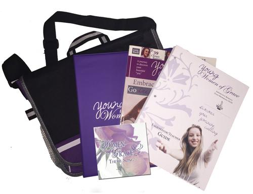 This kit is the complete resource for facilitating a Young Women of Grace Study Group. It includes the Young Women of Grace Facilitator/Teacher Guide with a complimentary binder, a copy of the Young Women of Grace Study Guide, the Women of Grace Theme Song on CD, and a beautiful messenger style Young Women of Grace Tote Bag to keep your materials together.