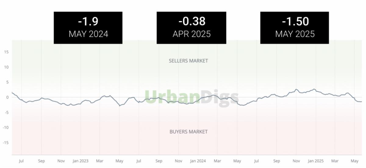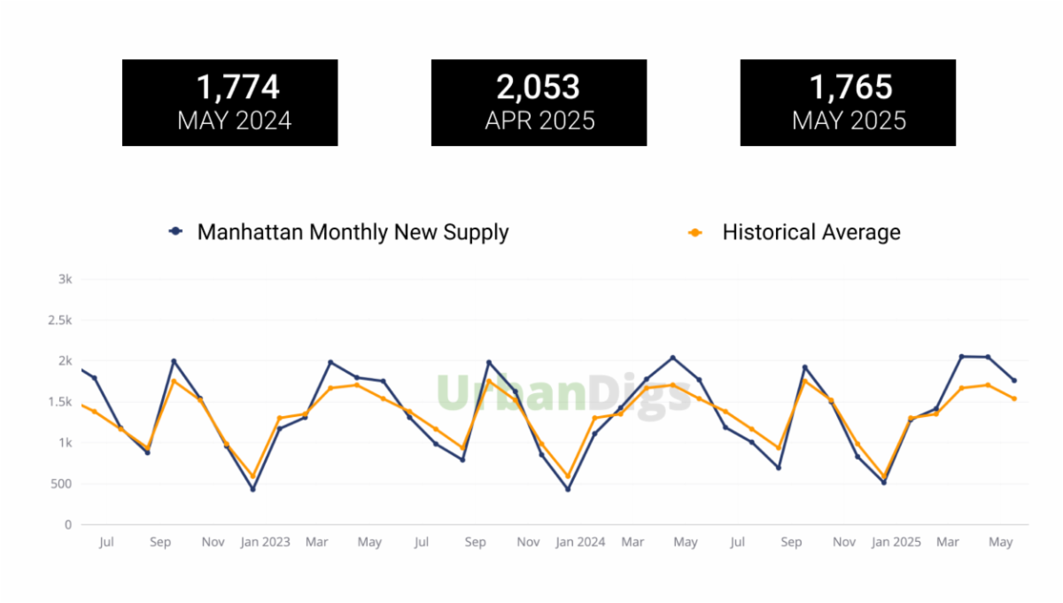 Both the number of new listings and signed purchase contracts declined in May 2025 versus the prior month, and we are now likely reaching the point when inventory has peaked for the Spring/Summer period. For comparative context, May 2025 new listing supply levels were nearly identical to the same month last year, while the number of contracts signed in May 2025 actually exceeded May 2024.