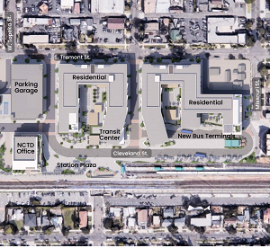 Oceanside Transit Center Redevelopment | The North County Transit District is proposing to redevelop the Oceanside Transit Center at 235 S.Tremont Street. The proposed project includes new mixed-income apartments, hospitality, office space, shopping and dining options, with a modernized transit center, including improved pedestrian and bicycle circulation. The existing parking structure would remain. The plan is expected to be brought before the City Council in late 2023. Learn more | | |