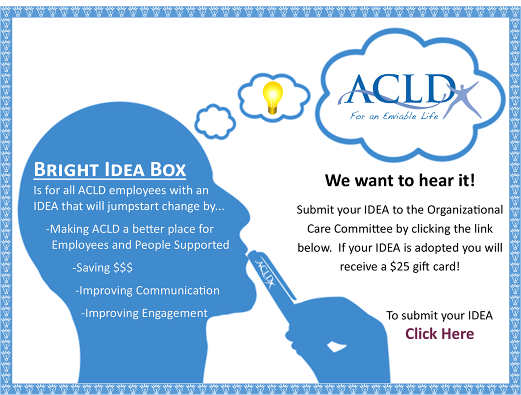 The Board of Directors is excited to announce the 9th annual Exemplary Service Award for our staff. This award recognizes exemplary service and commitment to ACLD’s Mission and Vision to provide an enviable life to those supported in ACLD’s programs. In order to apply click the button below and it will take you to the application.