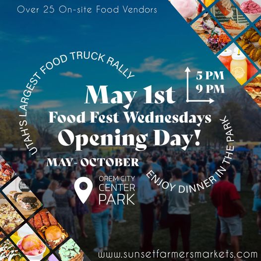 The Orem Farmers Market is back! Every Wednesday from 5 to 9 PM in City Center Park, come enjoy great food, finds, music, friends, and family. It is a wonderful way to wind down at night and enjoy some of the best produce, crafts, art, and music Orem has to offer. | |