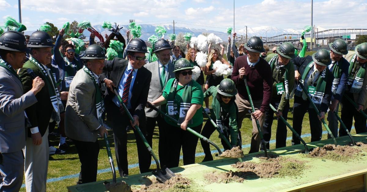 Mayor Young and Council member Jeff Lambson represented the City of Orem at the groundbreaking of the new UCCU Stadium yesterday. It was an exciting day for Wolverines everywhere! #GoUVU