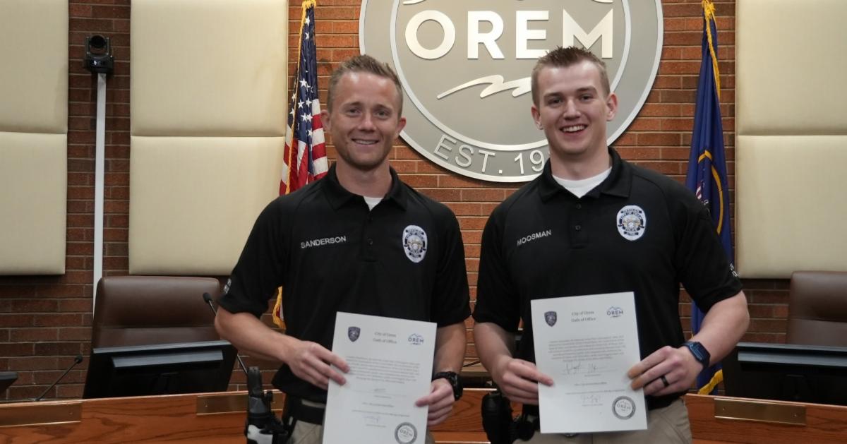 We had two new officers take the oath and join the Orem Police Department. Welcome to the team, Officers Sanderson and Moosman! | |