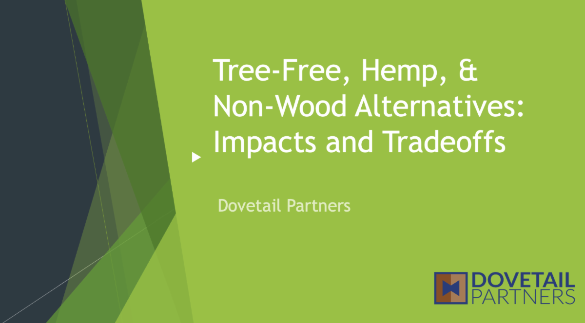 Join Dovetail Partners on June 6th from 8:30am - 9:45am CT, as we examine non-wood alternatives to traditional forest products, including trends in “tree-free” and use of fibers such as hemp. This webinar will explore the role of hemp, agricultural residues, and other materials in diversifying material supplies and the impacts for forestry and farming that result. Kathryn, Jim, and Mark will discuss environmental impacts, trade-offs, and key insights.