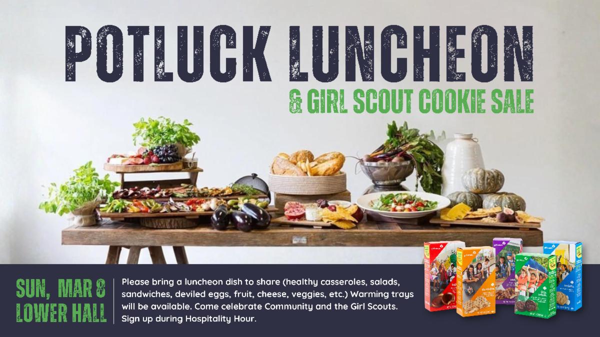 Quarterly Parish Potluck, Sunday, March 8, following service, Lower Hall