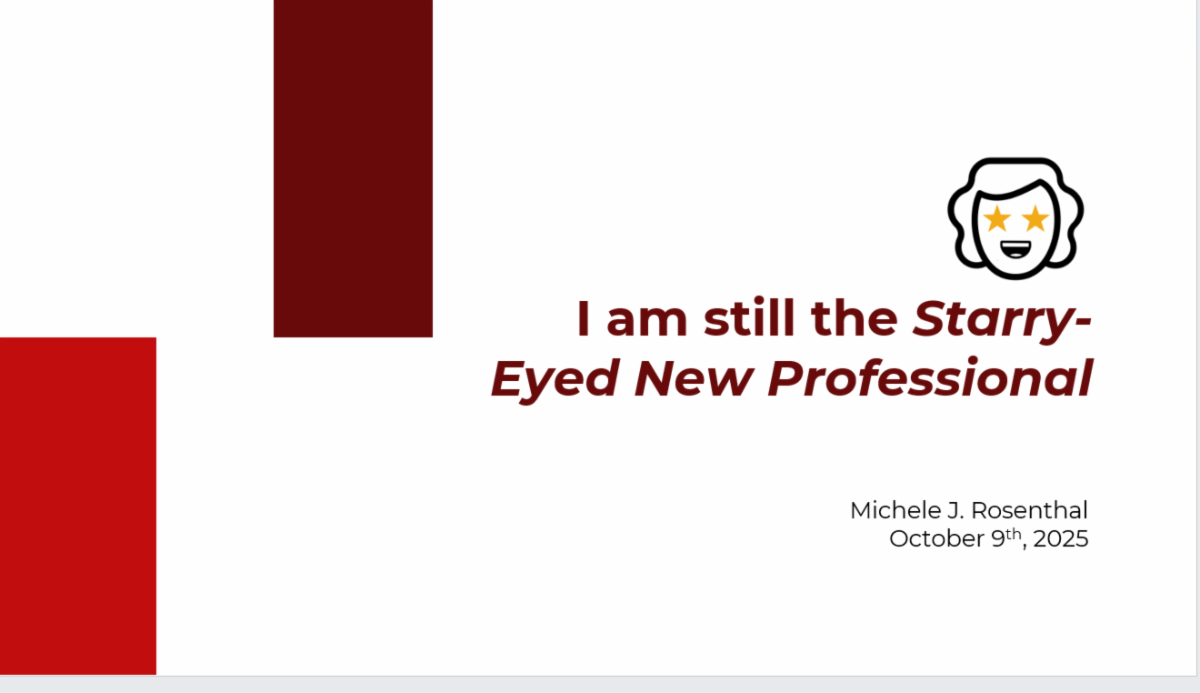 Michele Rosenthal, Associate Director of Student Experience and Graduate Co-op Success, presented "I Am Still the Starry-Eyed New Professional" to members of the CSSH undergraduate academic advising staff. She provided an overview of her multi-faceted professional experience and discussed her approach to leadership, advising, and navigating the higher education landscape.
