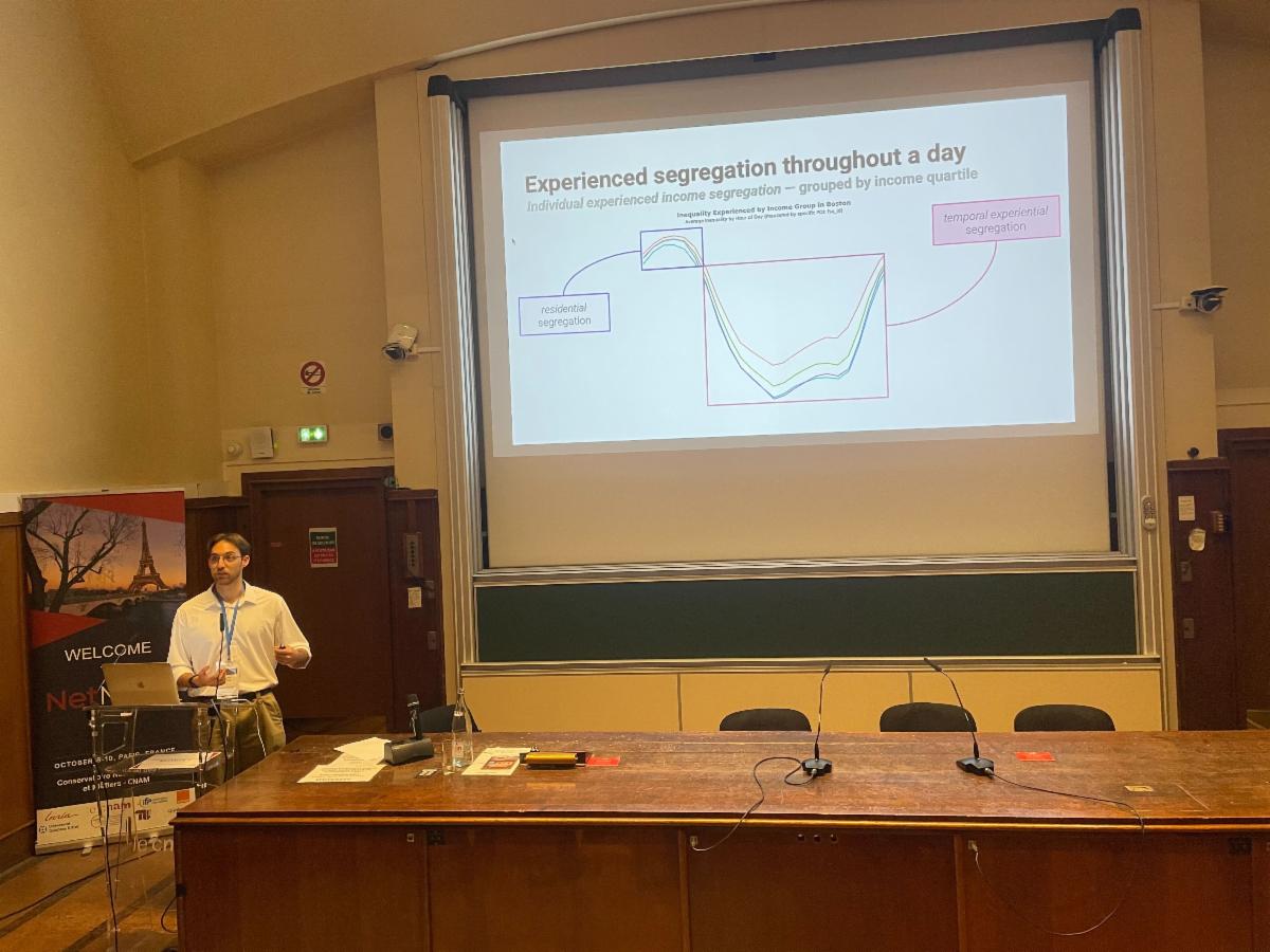 PhD student Josh Rosen and BARI postdoc Sarah Sanchez traveled to Paris to present at NetMob 2025, the primary conference on the use of cellphone mobility data for social/urban science. Josh presented work examining how inequality in access to time as a resource leads to urban inequality such as segregation. Sarah spoke about a collaboration with the SUNLab to mitigate bias in cellphone mobility data to better estimate patterns of segregation across the city.