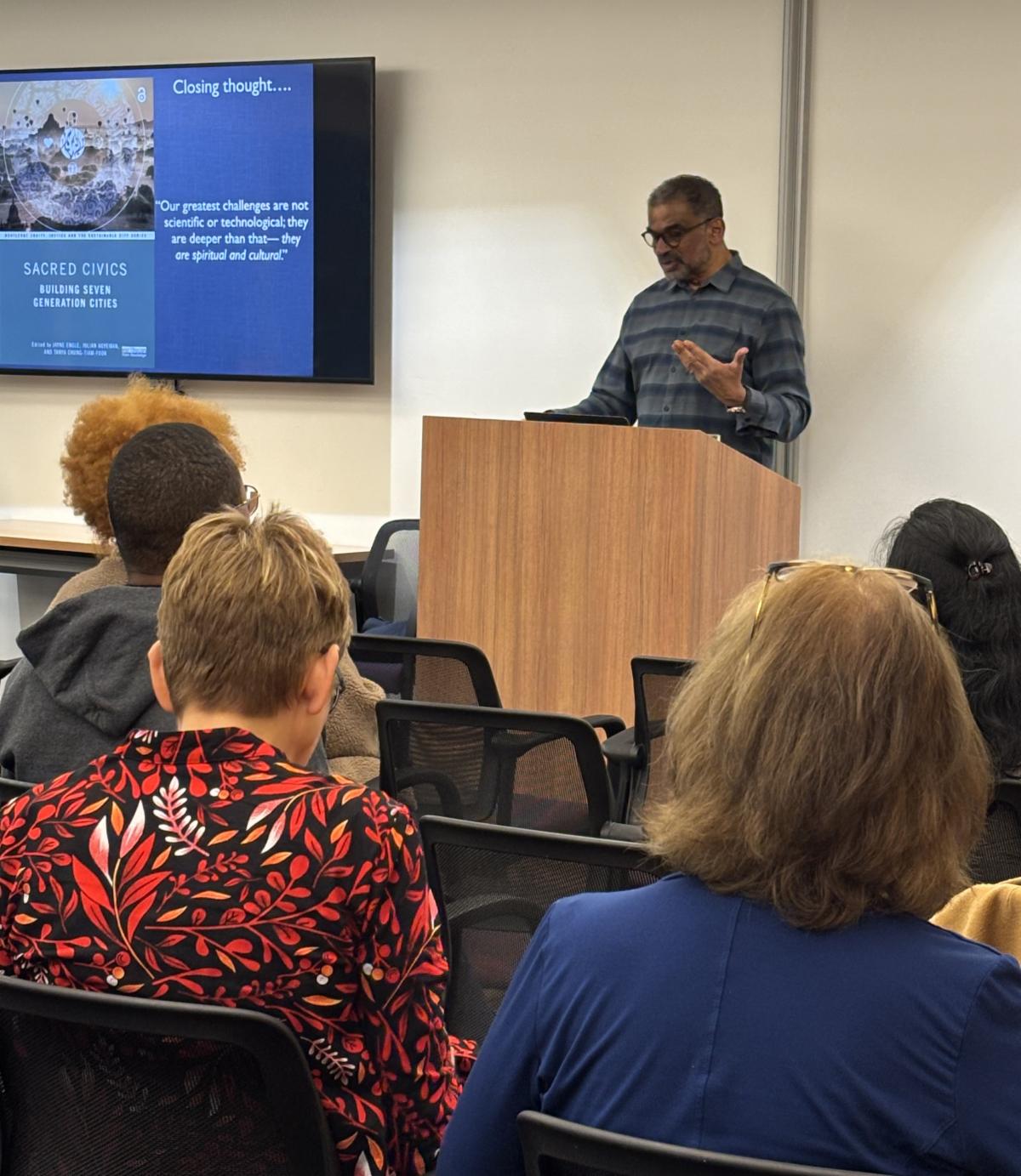 Prof. Julian Agyeman from Tufts University delivered a talk on "Just Sustaibabilities in Policy, Planning, and Practice" as part of the Policy School Seminar Series. Who can belong in our cities, he proposed, will ultimately determine what our cities can become. Prof. Agyeman brought this concept to life through compelling examples spanning urban planning and design, food justice, and the 'Minneapolis Paradox,’ demonstrating that true sustainability cannot exist without justice and equity at its core.