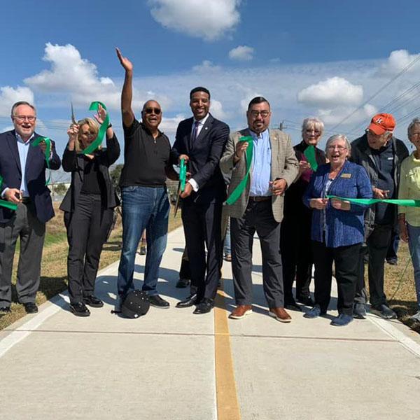 The Brays Oaks Trail that connects the Braeburn Valley West community to the Keegans Bayou Trail is officially complete. This project represents great collaboration between many entities and individuals. It is a continuation of the commitment Council Member Pollard made to increase connectivity between different areas of Houston. Special thanks to Commissioner Rodney Ellis, Former CM Mike Laster, the District J office staff, Brays Oaks Management District, Neighborhoods to Trails SW, Friends of Keegans Bayou, and everyone else who helped make this possible.