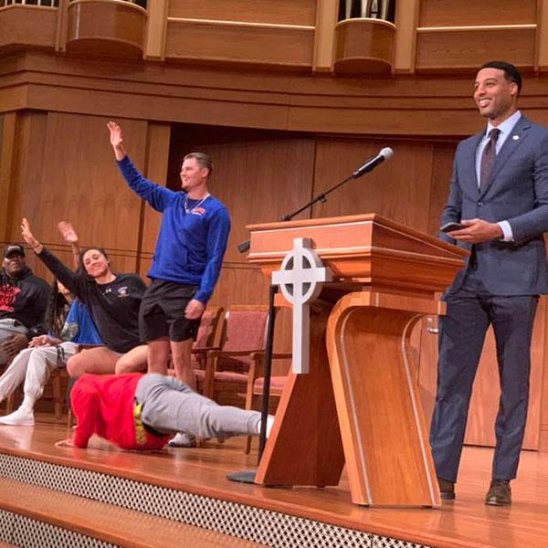 Council Member Pollard served as a guest speaker for the Black History program at Houston Baptist University. The event included a Jeopardy-style game featuring facts related to Black history. Special thanks to all the students who attended and participated in the program as well as to Athletic Director Steve Moniaci, and the entire athletic department. HBU made Council Member Pollard an honorary Husky in appreciation of his support.