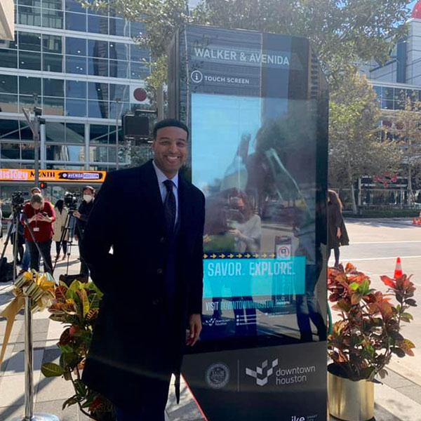 It has been two years since Council Member Edward Pollard brought the idea of interactive kiosks to Mayor Sylvester Turner. Now, the city of Houston has partnered with IKE Smart City to bring interactive way-finding kiosks to provide information quickly and easily. The street-level kiosks will be strategically located around the city, and they will generate revenue without using tax dollars. Special thanks to the mayor, city council, Houston First, Downtown Management District and others who helped push this initiative forward.