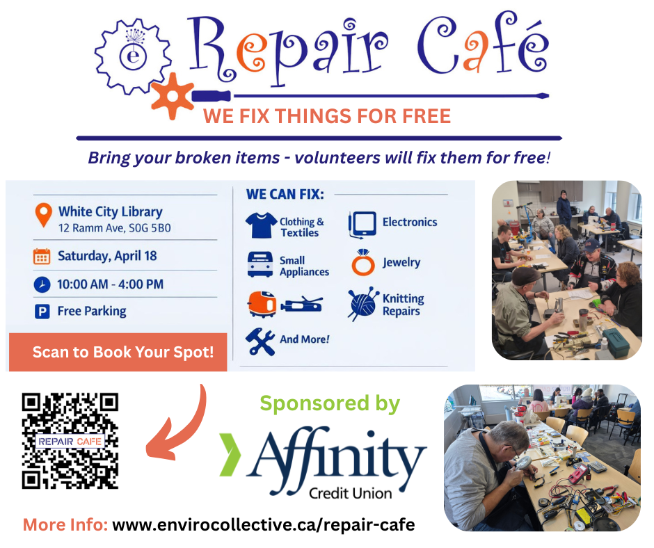 ECN attended the provincial Sask Repair Café Organizer Meet‑Up, connecting with Repair Cafés from across Saskatchewan. The online session let us share experiences, learn from other organizers, and explore ways to strengthen repair culture in our communities. It helped build relationships and support a more collaborative, province‑wide repair network.