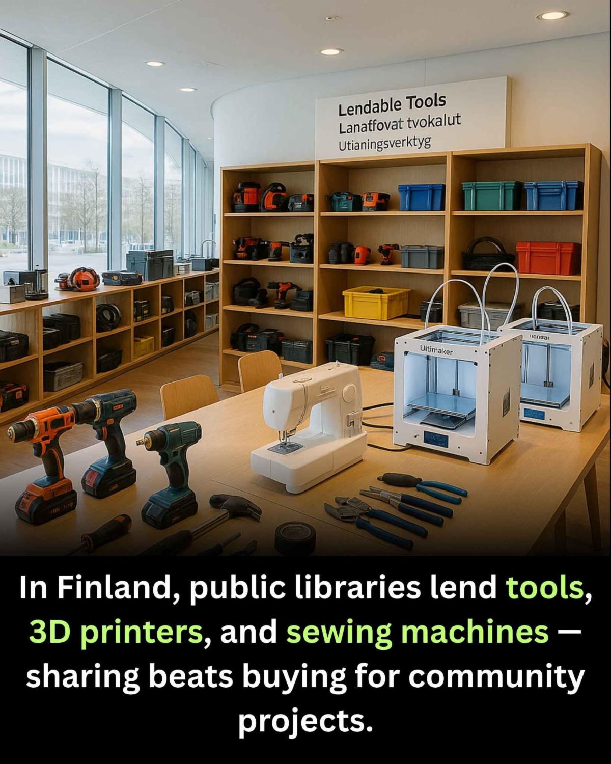 | | Findland's Libraries Lend Sewing Machines | | | | In Finland, libraries are redefining community by lending more than books, they lend sewing machines. Visitors can repair clothes, learn new skills, and create with donated fabric, thread, and tools, all free of charge. These welcoming craft zones spark creativity, pride, and sustainability, turning simple mending into acts of resilience. Each stitch restores not only garments but also strengthens the fabric of community itself. | | |