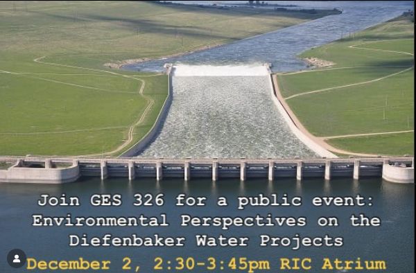 Rebecca Magnus (Nature Saskatchewan); Rodger Ross (Indigenous worldview); Dr Tamar Richards-Thomas (UofR). Infographics: Students from the class will share infographics on resource management issues with the Diefenbaker water projects. All are welcome to attend!