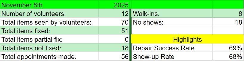 | | Over 3,000 Indigenous Leaders Joined COP 30 | | + Many of our images, logos, and graphics are clickable links that lead to more content + | | Highlights From Last Month | | Luther College Repair Cafe Highlights | | Grateful to our hosts NVSSN (Nonprofit & Voluntary Sector Studies Network) and UofR Office of Sustainability for helping us put on a great Repair Cafe on November 8th | | Our new volunteer Josh Johnston helps a participant repair a mini vacuum | | Techs Mufeed Tawfeeq and John Tyler tried to save the dying oscillating fan. RIP | | ECN was at the 2025 ASHRAE BuildGreen Saskatchewan Conference in Regina on November 12–13. The theme was “Empowering the Prairies with Sustainable Building Solutions,” and it was an inspiring gathering of professionals committed to sustainable building practices. | | Community Gathers to Learn How to Lower Utility Bills at BuildGreen Saskatchewan Public Forum | | |