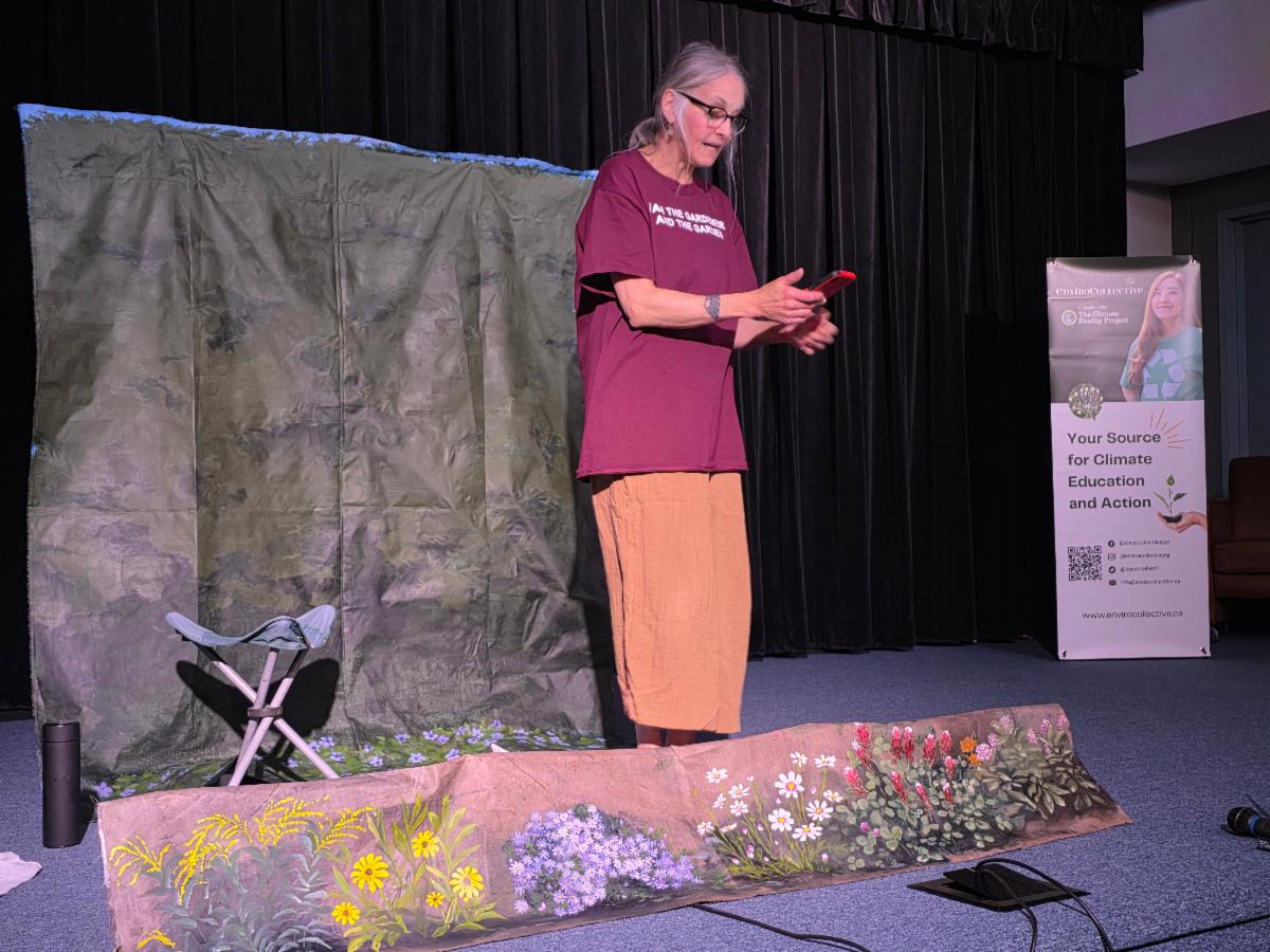 The Gardener and the Golfer brought a thoughtful blend of humour and climate insight to the Regina Public Library. Dale Hamilton’s one‑woman performance shifted between Mary, a regenerative gardener, and Bill, a golf‑loving hedge‑fund manager, highlighting how everyday neighbours can embody larger environmental tensions. The audience watched their conflict unfold through land use, values, and responsibility, all delivered with warmth and sharp observation. By the end, the play revealed the possibility of shared ground, showing that climate conversations can be personal, relatable, and rooted in empathy. The RPL crowd responded with enthusiasm, appreciating a performance that made big issues feel human.