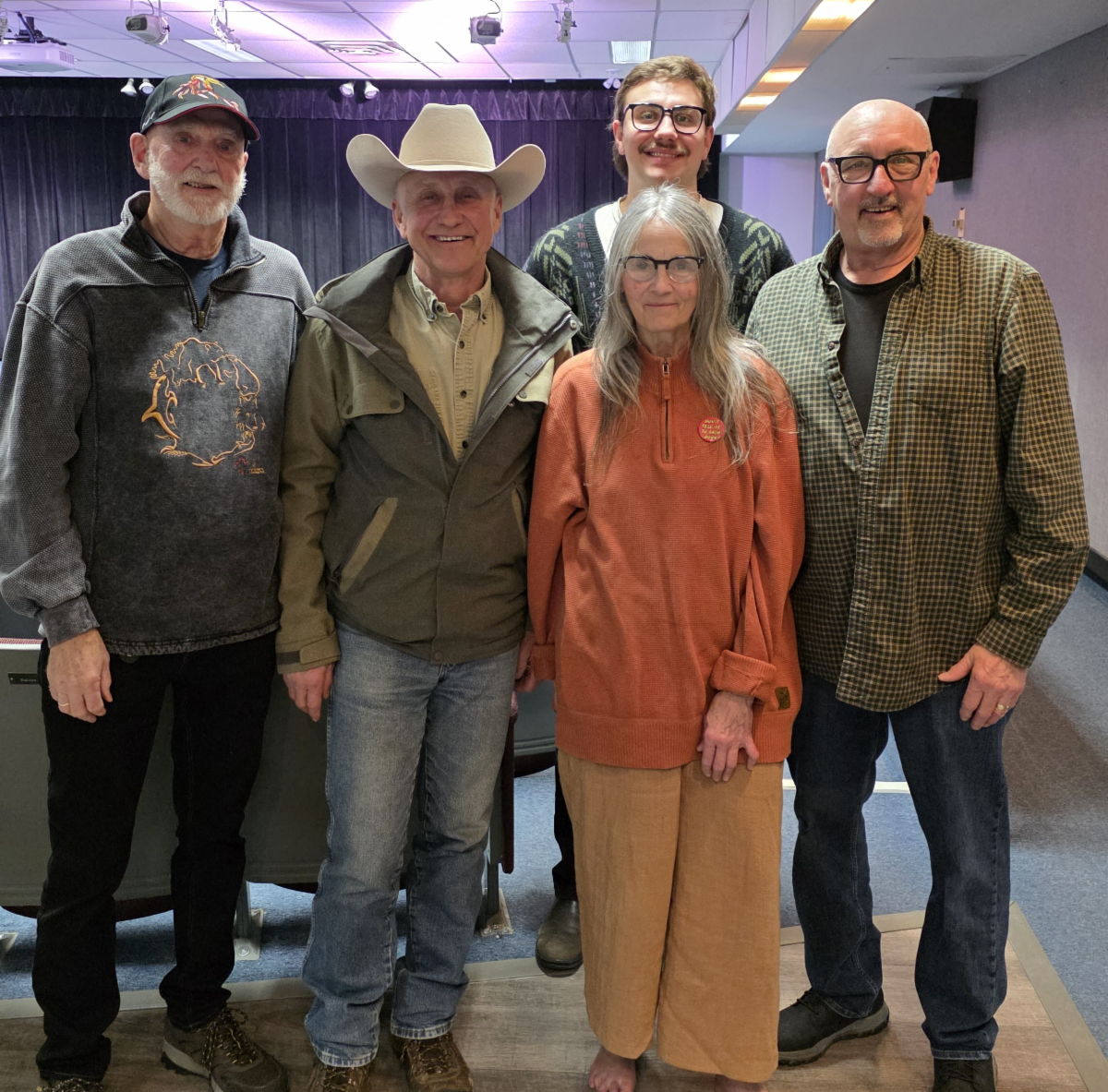 Left Picture: Dale Hamilton with her one women play. Right Picture: Gerry Jones ECN Community Engagement Coordinator, Greg Van Luven, and his son Mason Van Luven panelists from the National Farmers Union, Dale Hamilton and ECN Chair Rob Deglau,
