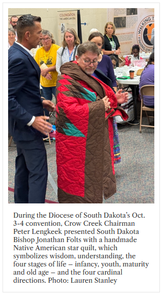 “Our actions have alienated and separated us from you, our Native siblings. Instead of showing ourselves as imitators of Jesus Christ, as our Scriptures call us to be, we instead have acted as divine enforcers of a misguided notion of entitlement and betterment,” Folts said in his apology delivered Aug. 16 to Lengkeek at St. John the Baptist Episcopal Church on the Crow Creek Indian Reservation. The apology was first made public when it was read during South Dakota’s Oct. 3-4 diocesan convention in Pierre.