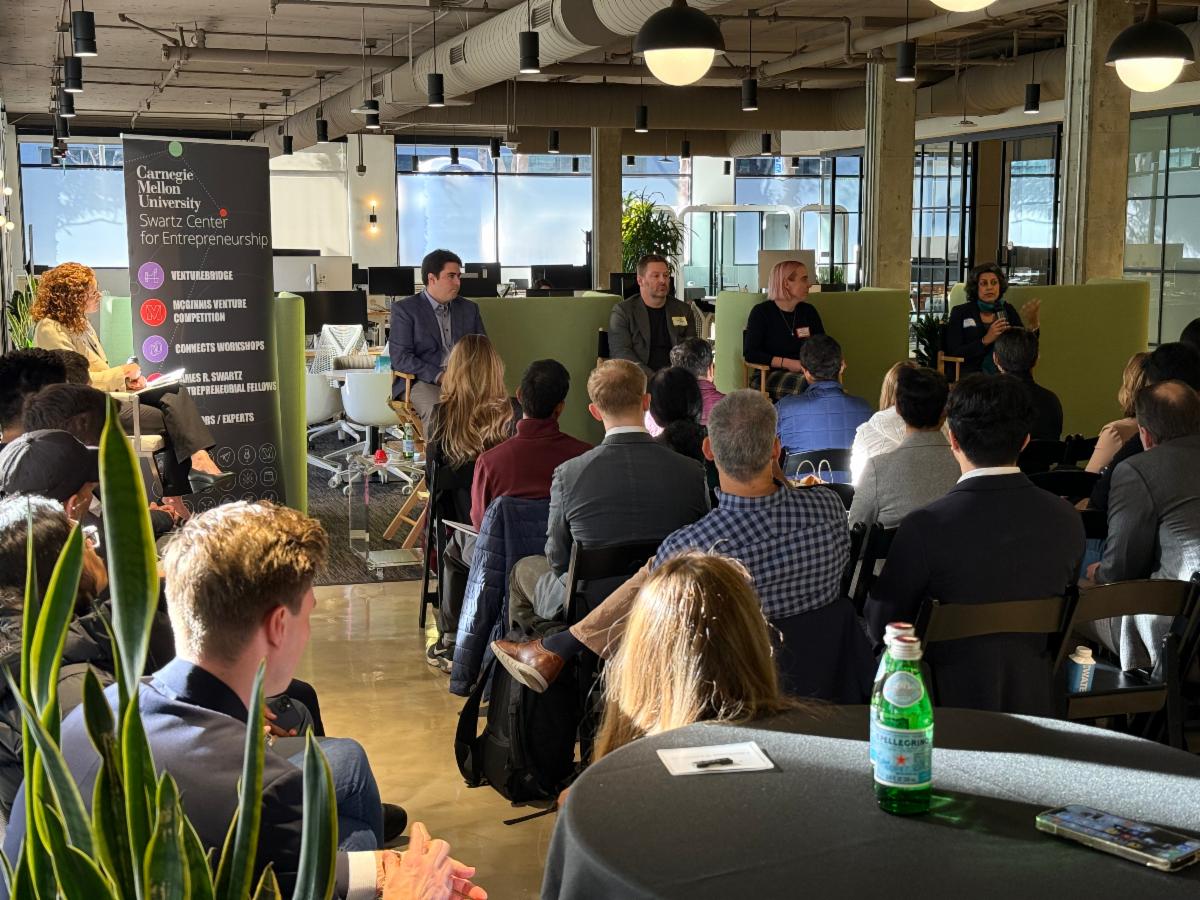 For the second year in a row, PLSA teamed up with the CMU Swartz Center for Entrepreneurship to host an event at JPM. The gathering included a panel with Peptilogics CEO Jonathan Steckbeck, DELFI Diagnostics CTO Amoolya Singh, Breakout Ventures Partner Dana Watt, and CMU professor Andreas Pfenning, and was moderated by PLSA CEO Megan Shaw.
