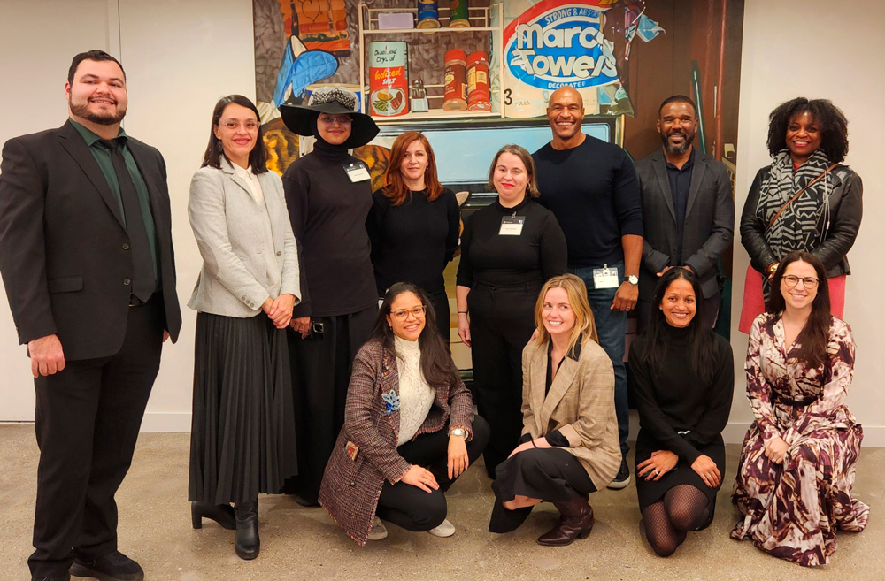 From left: School of Arts Program & Communications Manager Neophytos Ioannou; School of Arts Associate Dean Julia Del Palacio; School of Arts student Mizznna Sharief; former CUNY Office of the Chancellor Confidential Executive Coordinator and CUNY Arts Strategic Partnerships & Cultural Awareness Manager Fatima Hernandez; School of Arts student Silvia Mihai; CUNY Office of the Chancellor Office Assistant Debra Zechowski; The Macquarie Group Foundation, Americas Coordinator, Willa Kendrick; Queens College student Kenny Ulysses Grant; The Macquarie Group Foundation, Americas Regional Head, Pritha Mittal; The Macquarie Group, Americas Creative Lead, Chuck Reese; CUNY Office of Strategy and Policy Implementation Chief of Staff Vernitta Chambers; CUNY Office of Careers and Industry Partnerships Director of Industry Growth and Partnerships Abby Hamilton. | |