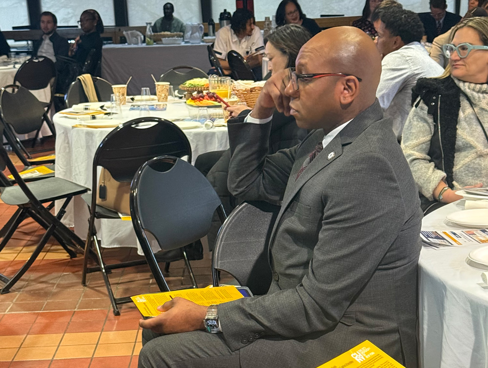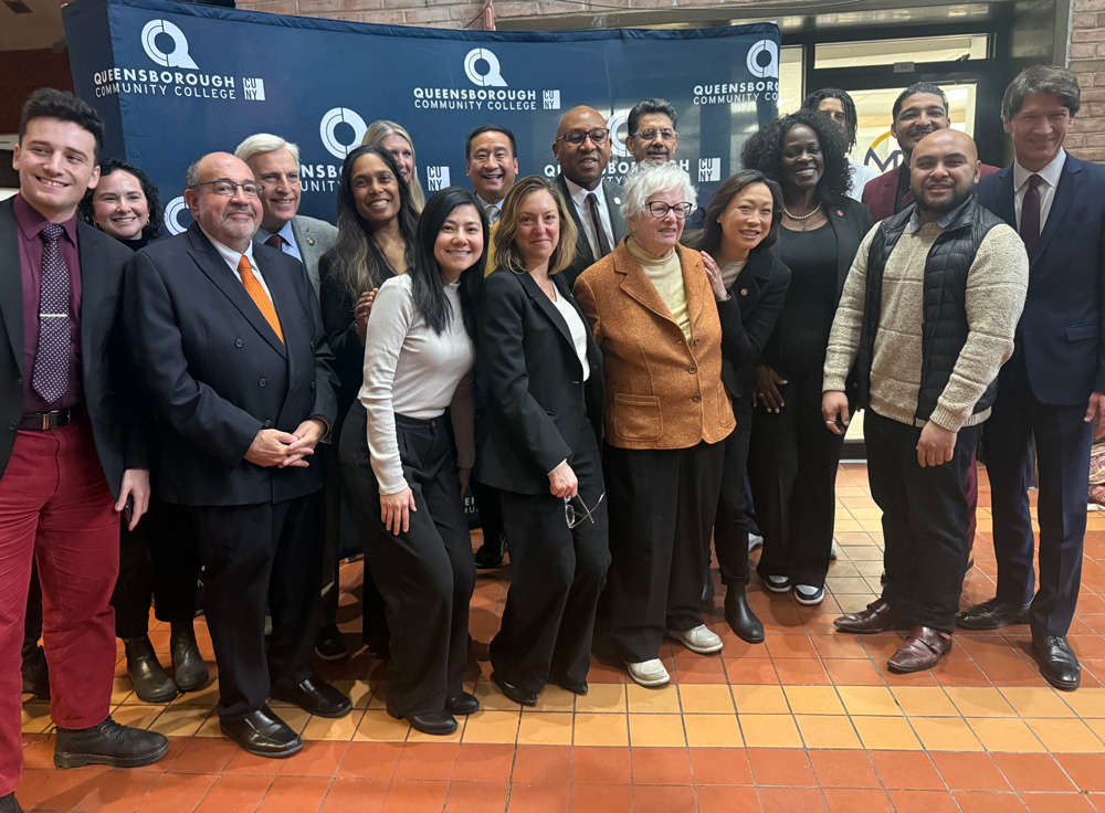 The CUNY Queens County Legislative Breakfast, an annual ritual for the borough’s lawmakers and CUNY campus administrators, took place on February 6 at Queensborough Community College. The discussions focused on improvements to the proposed 2025-26 New York State Executive Budget. | From left: Benjamin Lotto, communications director for Assembly Member Zohran Mamdani; Nomi Tinkelman, policy and advocacy director for New York City Council Member Tiffany Caban; CUNY Vice Chancellor for Government Affairs Jeff Rodus; Assembly Member David Weprin; CUNY Law School Dean Sudha Setty; Evelyn Li, constituent liaison/field representative for Congresswoman Grace Meng; Queensborough Community College President Christine Mangino; Queens College President Frank H. Wu; CUNY Senior Vice Chancellor for Strategy & Policy Implementation Sascha Owen; Queens Borough President Donovan Richards; New York State Senator Toby Stavisky; CUNY Vice Chancellor for Facilities Planning, Construction & Management Mohamed Attalla; New York City Council Member Linda Lee; York College President Claudia V. Schrader; Queensborough Nursing Student and Student Government Vice President for Part-Time Students Jake Jacobo; Assembly Member Steven Raga; Neil Trivedi, Deputy Chief of Staff for Assembly Member Jenifer Rajkumar; LaGuardia Community College President Kenneth Adams | President Frank H. Wu took a turn at the podium. | Queens Borough President Donovan Richards was among the elected officials in attendance. | Former Silicon Valley Bank CEO Kenneth Wilcox, author of the China Business Conundrum: Ensure That "Win-Win" Doesn't Mean Western Companies Lose Twice, gave a lecture at free hour on February 6. The book is drawn from Wilcox’s business experiences in China. President Frank H. Wu hosted the event. | From left: Eric Rosano (Accounting) and Kenneth Wilcox | |