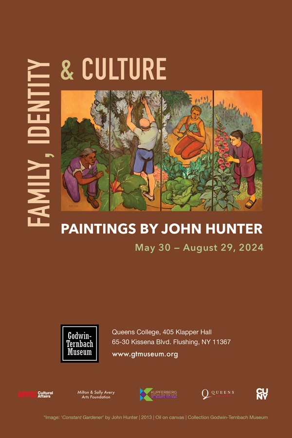 All month, the Godwin-Ternbach Museum is exhibiting two paintings by John Hunter: Kimani Had a Gun (2012) and Reynoldo Meets the Man (2012). The Godwin-Ternbach featured Hunter’s work last year in a solo show that examined his identity as a gay Black man who is a Renaissance scholar, curator, author, and artist.