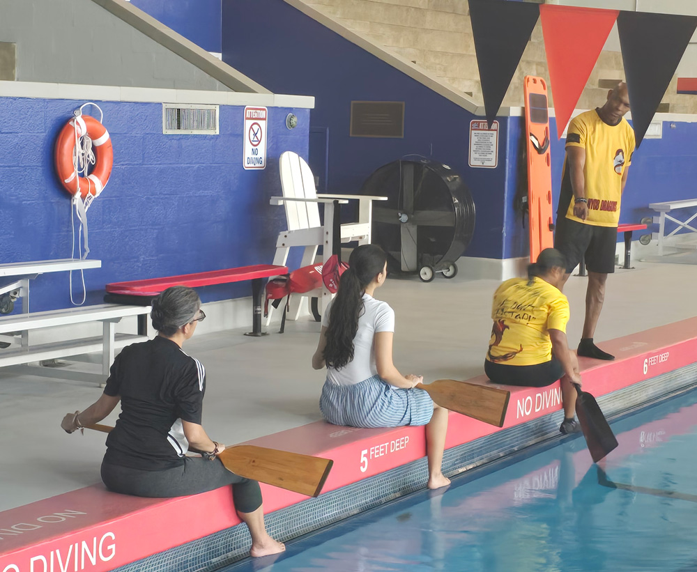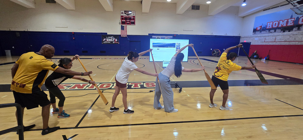 Training began on May 18 to prepare the team to compete the weekend of August 9-10. Because the water in the Flushing Meadow Lake was still too cold, training initially took place indoors at the Queens College pool. As Marquez explains, they would sit alongside the pool with their paddles in the water and practice the proper holding and paddling technique.
