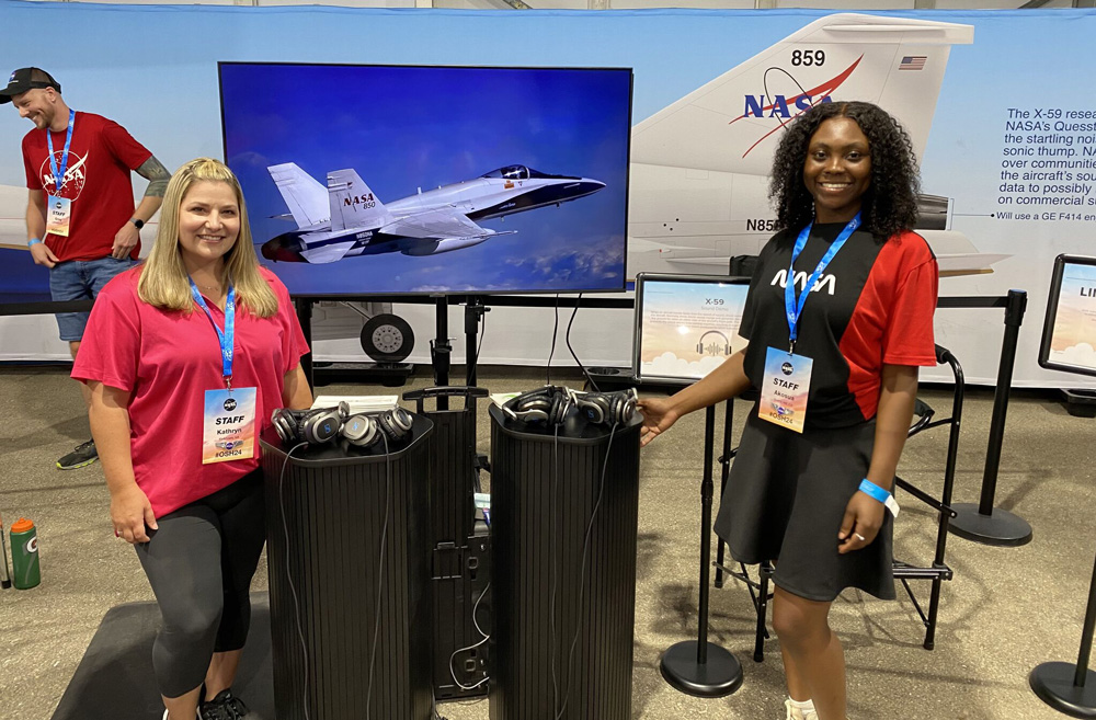Dufie works at NASA’s Armstrong Flight Research Center located inside Edwards Air Force Base in California. She is heavily involved in phase two, putting flight test plans into place and working in the control room during test missions. On the ground, she’s organizing crews to service the ground recording system microphones that record the acoustics. Additionally, she serves as a flight test engineer and flies in the back seat of the F-15 aircraft that will probe through the shockwaves of the X-59.