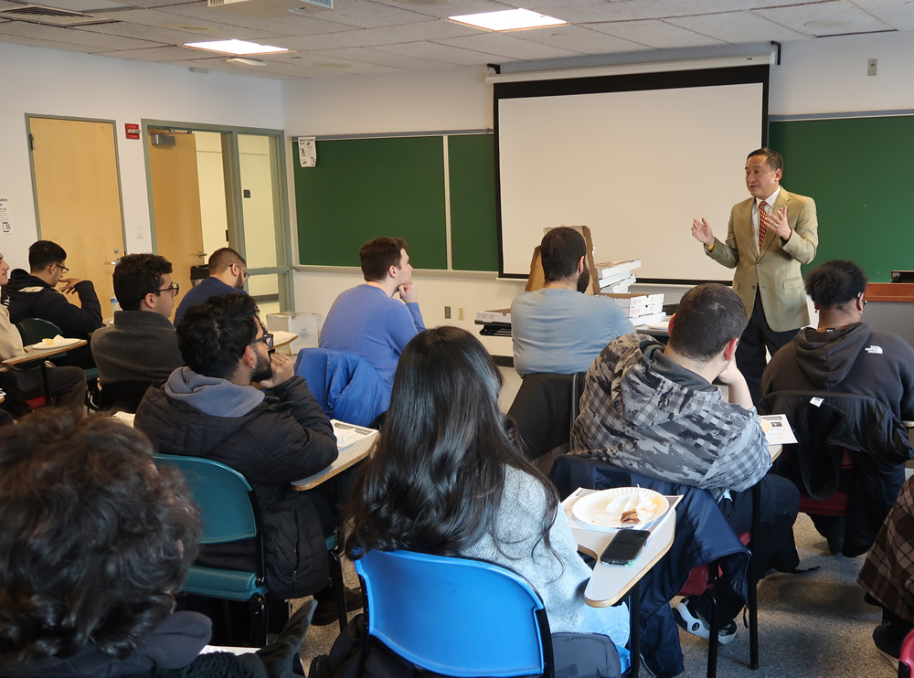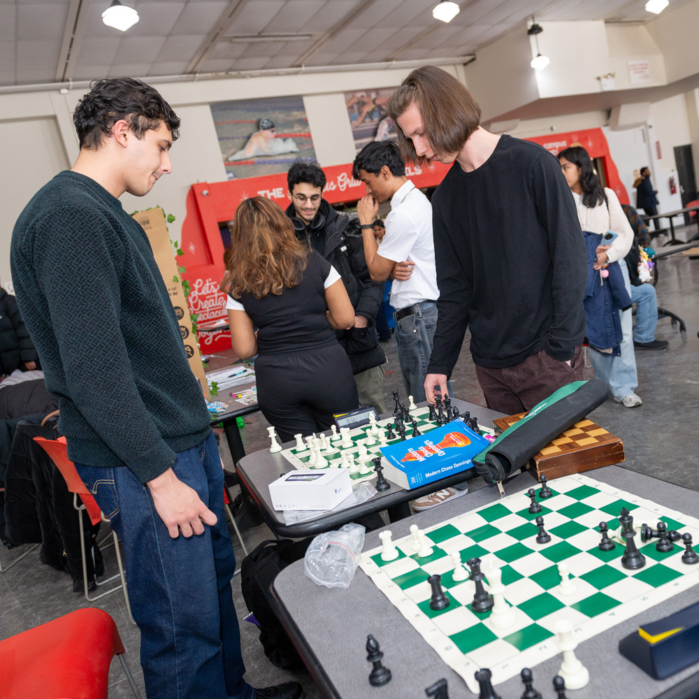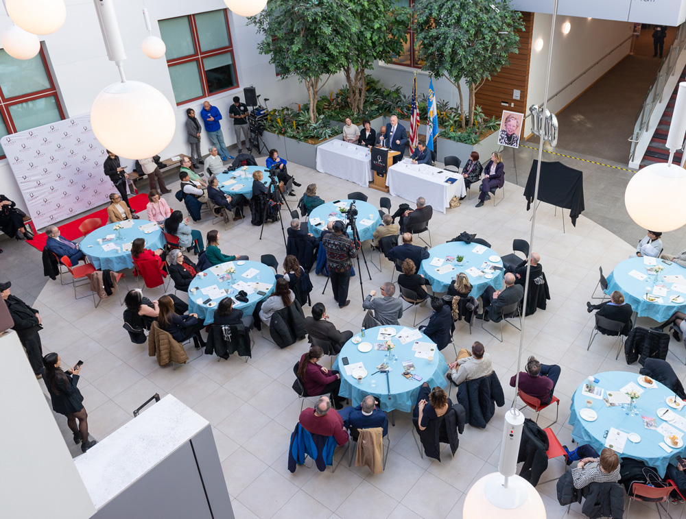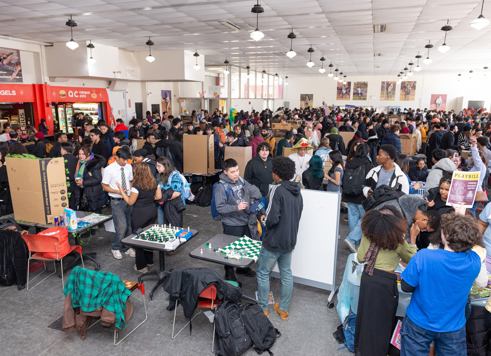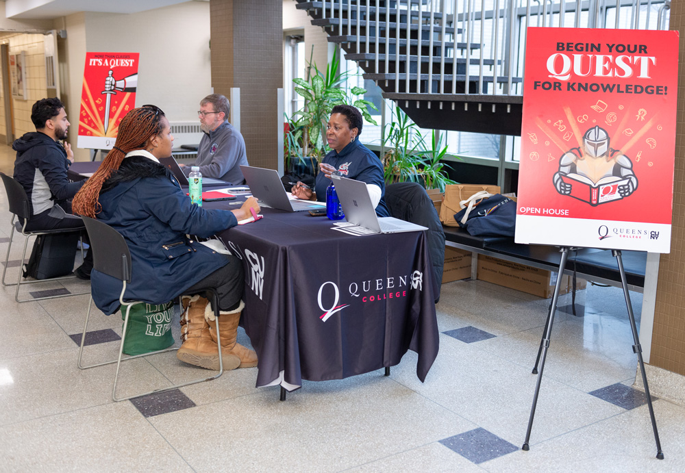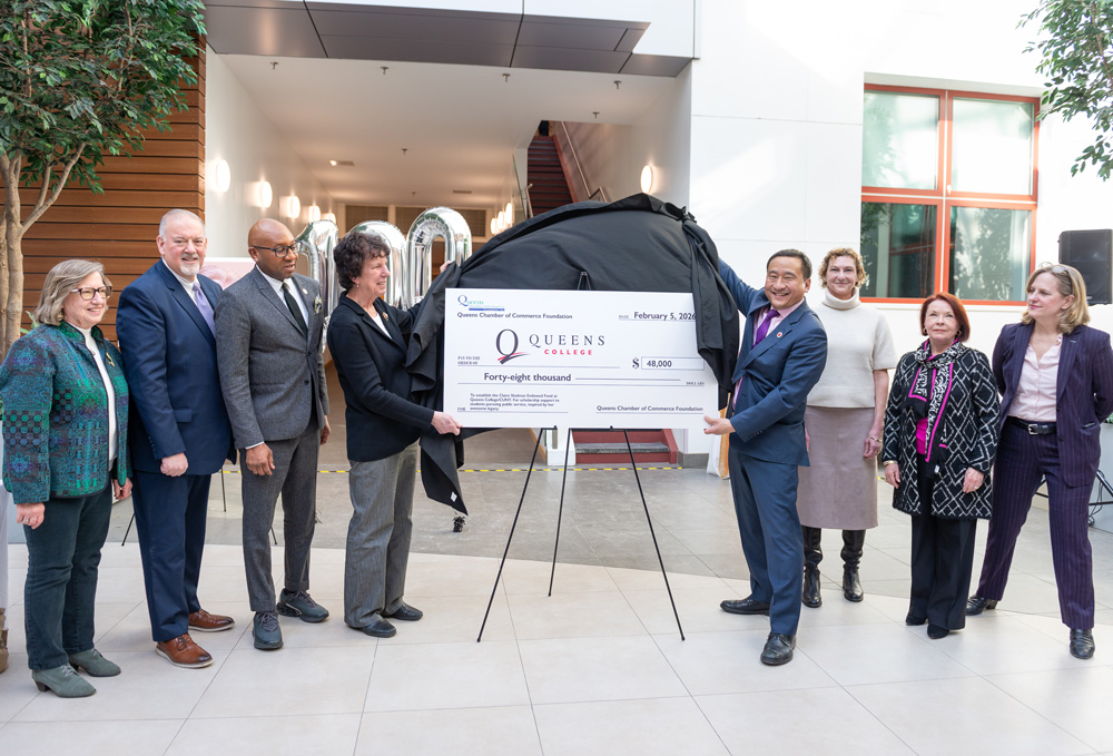 | | Staff from Academic Advising and the Offices of the Registrar, Financial Aid, and Bursar helped students register for the spring semester at three enrollment assistance events in Kiely Hall last month. Students benefited from overall academic advising, received guidance for specific majors and programs, and saw resolution of issues that impeded registration. | | What types of work can students pursue after majoring in the social sciences or the humanities? President Frank H. Wu discussed his own journey and lessons learned about career paths in a talk sponsored by the Department of Political Science during free hour on Wednesday, February 4. | | Winter weather did not diminish the appeal of QC’s varied extracurricular activities. Club Day moved indoors on February 4 so students could explore their options, including Greek life, sports, and pre-professional organizations. | | From left: Former New York Community Bank Foundation Executive Director Marian Conway; Queens Chamber of Commerce President & Chief Executive Officer Tom Grech; Queens Borough President Donovan J. Richards Jr.; U.S. Astronaut Emerita Ellen Baker, Shulman’s daughter; President Frank H. Wu; Urban Studies Chair Melissa Checker; Queens Chamber of Commerce Foundation Board Member Eileen Auld; Queens District Attorney Melinda Katz | Announcing the new Claire Shulman Scholarship on February 5—less than three weeks shy of what would have been the honoree’s 100th birthday—the Queens Chamber of Commerce Foundation and Queens College held a press conference in the atrium of the Aaron Copland School of Music. Urban Studies was well represented at the event. Launched with a generous donation from the Queens Chamber of Commerce Foundation, the scholarship commemorates Shulman, a nurse and community advocate who went on to serve 16 years as Queens Borough president, the first woman to occupy that office. Queens Borough President Donovan Richards; Queens District Attorney Melinda Katz; Shulman's daughter, U.S. Astronaut Emerita Ellen Baker; Urban Studies Chair Melissa Checker; and Queens Chamber of Commerce Foundation Board Member Eileen Auld were among the speakers, as reported by QNS. Attendees included Shulman’s former staff and friends and Urban Studies alumni and faculty. | From left: Tom Grech and Donovan Richards with a photo of Shulman | There’s no need for faculty and staff to go off campus in search of a warm lunch on a cold day. The Piano Room—the Faculty and Staff Dining Room—offers something for everyone, with kosher, halal, vegan, and gluten-free selections. Faculty and staff may bring guests, including students. The Piano Room is in Dining Hall 120, formerly the President's Lounge. | Indoor Track and Field to Compete at ECC Championships | The Queens College men’s and women’s indoor track and field team will wrap up the 2025–26 season when they compete at the East Coast Conference (ECC) Championship this Sunday, February 15, at 4 pm at the Ocean Breeze Complex. | |