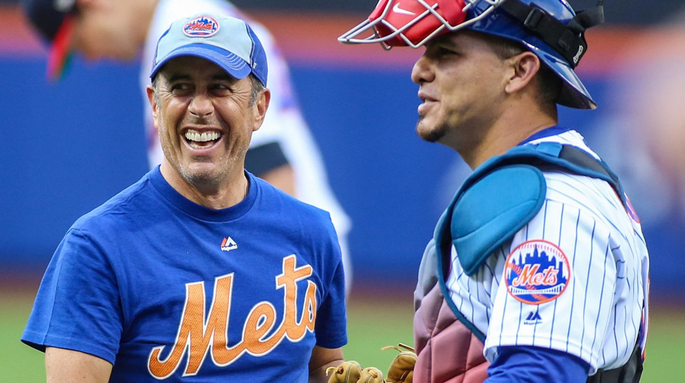 | Jerry Seinfeld ’76 has joined the Topps baseball card lineup. The company’s 2026 Series 1 includes autographed, pack-pulled cards of Seinfeld, a Mets fan, in the uniform of his favorite team. | |