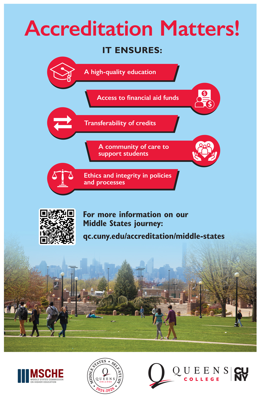 The three-day Middle States Commission for Higher Education (MSCHE) site visit started on campus Monday, March 23, with college community meetings and continues today. Faculty, staff, and students are encouraged to attend the final session in LeFrak Concert Hall at 10 am tomorrow—Wednesday, March 25—for the readout of the MSCHE report. An institutional accreditor recognized by the United States Department of Education, Middle States serves as an independent voice in higher education.