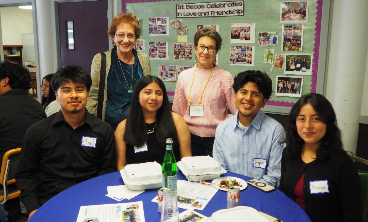 | | Four of the twelve students in the 2025 graduating class shared their stories and answered questions. Photo: Penny Jennings | | INVITATION to NYA SCHOLARSHIP CELEBRATION | | INVITATION: St. Bede's YOUNG ADULT FELLOWSHIP | | Around the table from left to right: Marissa Kovalovs, Lyn Hernandez, Catherine Caprio, Jessica Mariglio, Isaac Warren, Emily Mayock, & Roman Del Rio | | |