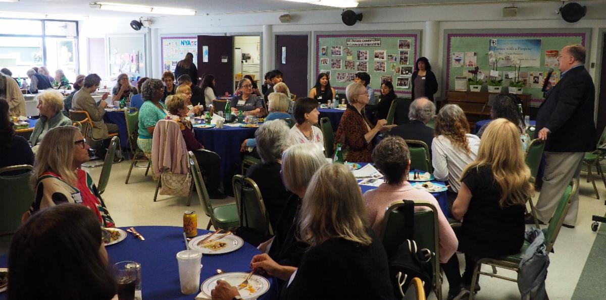 | | | EVENSONG with LILIA ENSEMBLE this Sunday | | Please be sure to put our next Friends of Music concert on your calendar!!! You will be transported by a beautiful Evensong featuring the delightful Lilia Ensemble along with the St. Bede's Choir directed by Frank Basile. This event will take place on Sunday, May 25, the feast of St. Bede, at 3:30 PM in the St. Bede's Sanctuary. | | NEIGHBORHOOD YOUTH ASSOCIATION (NYA) | | NYA President/CEO Bob Williams welcomes students, staff, trustees, donors, and members of the congregations of St. Bede's, St. Augustine by the Sea, St. Matthew's, and Ahavat Torah to the joyous lunch reception. Photo: Penny Jennings. | | |